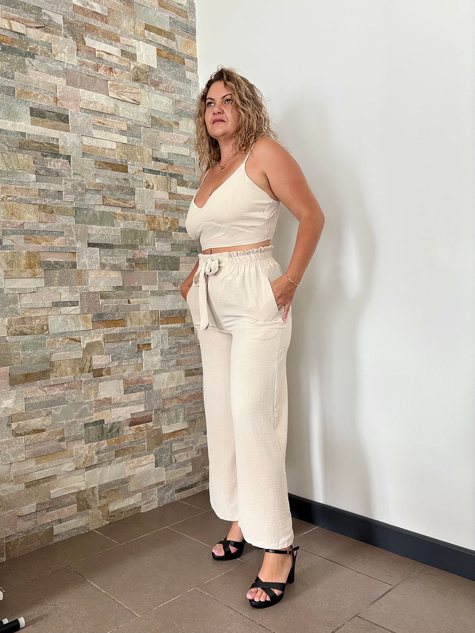 Ensemble deux pièces pantalon gilet sans manche couleur unie